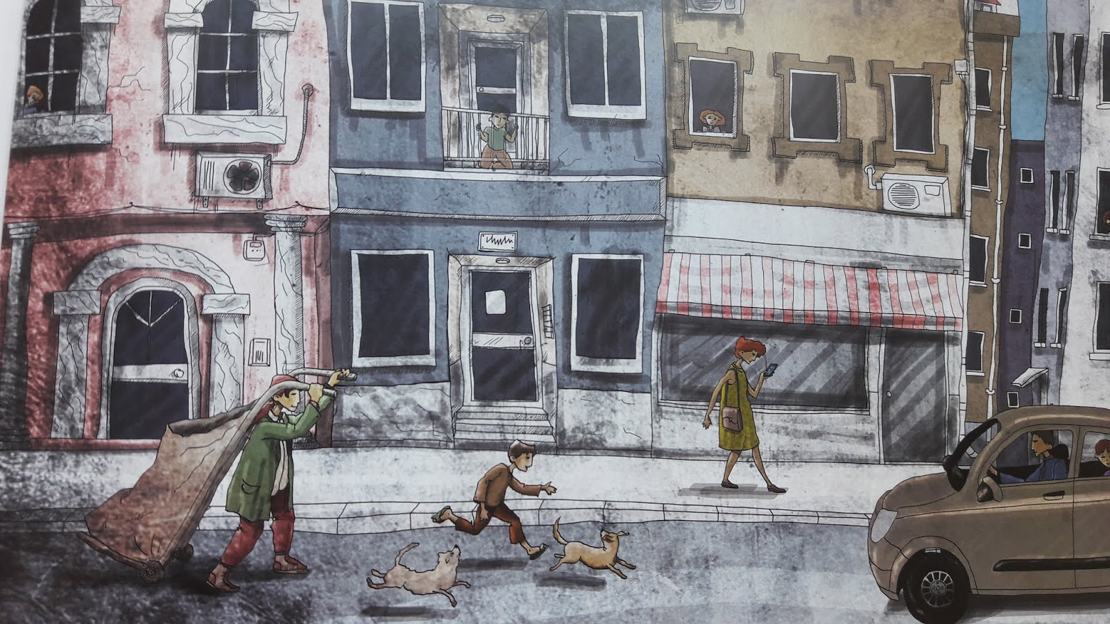 Hikaye ve çizimler öyle güzel birbirini tamamlamış ki, sadece resimlerine bakarak da okuma yapılabilir. Detaylardan örnek verecek olursam, annesiyle sokaklarda özgürce gezen Antika’nın evlerinde hapsolmuş çocukları görüp neden dışarı çık(a)madıklarını anlayamayışı: