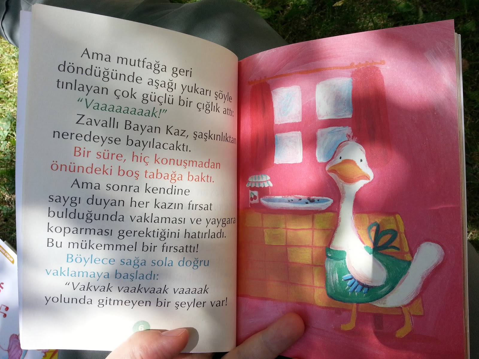 Bayan Kaz Bale Yapıyor kitabını ilki kadar çok sevemedim ama onun da eğlenceli bir hikayesi var. “Zarif” kelimesinin anlamını bile bilmeyen Bayan Kaz’ın ‘zarifçe’ bale yapmasını anlatıyor.