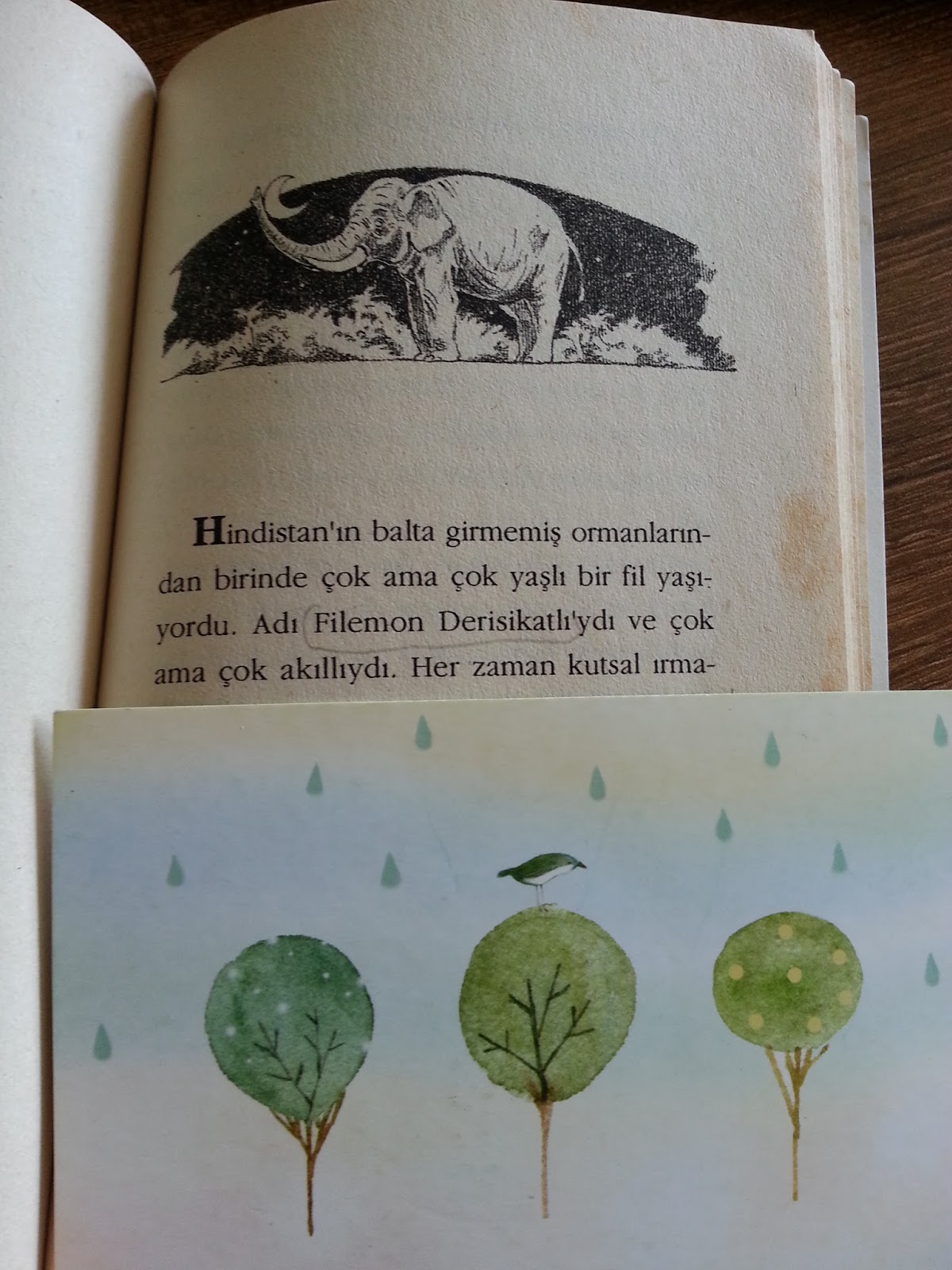 Moni’den sonra en sevdiğim öykü, Derisikatlı Fil oldu. Hindistan’ın balta girmemiş ormanlarında yaşayan çok ama çok yaşlı fili Filemon Derisikatlı’nın tek istediği bolca düşünmek ve düşünürken rahatsız edilmemek. Ancak ona kafa tutan birileri var!